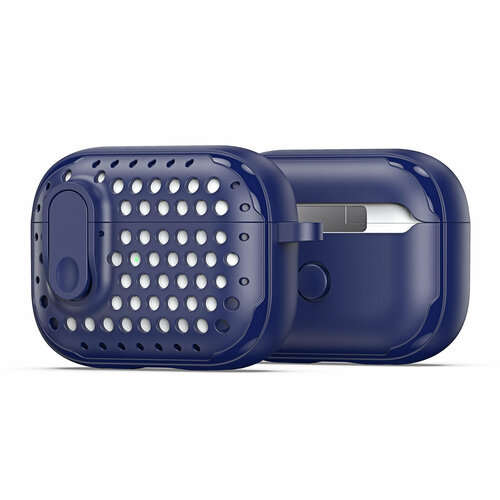 Усиленный чехол синего цвета от Dux Ducis для наушников Airpods Pro 2, серия PECM Series Case, в комплекте с карабином