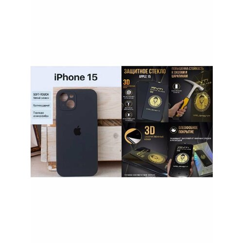 Чехол и защитное стекло для Iphone 15 с закрытой камерой