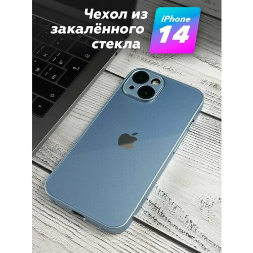 Чехол стеклянный ЭКОLАЙН, для iPhone 14, пластик/силикон/стекло,овый
