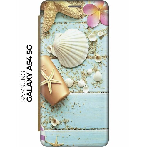 Чехол-книжка Пляжный натюрморт на Samsung Galaxy A54 5G / Самсунг А54 золотой