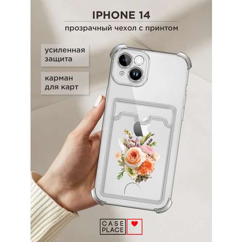 Чехол на Apple iPhone 14 (Айфон 14) с картой и принтом Нежный букет