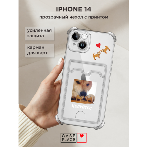 Чехол на Apple iPhone 14 (Айфон 14) с картой и принтом Целуйтес мем