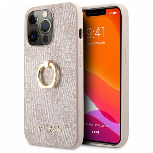 Чехол Guess PU 4G + Ring Hard для iPhone 13 Pro, цвет Розовый (GUHCP13L4GMRPI)