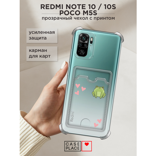 Чехол на Xiaomi Redmi Note 10/10S/Poco M5s (Редми Нот 10/10S/Поко M5s) с картой и принтом С лягушкой и сердечками