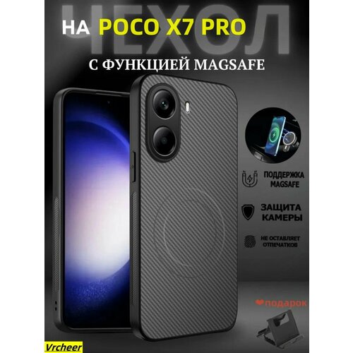 Чехол на Poco X7 Pro / Поко Х7 Про карбоновый с Изделие с магнитным креплением и поддержкой беспроводной зарядки тонкий(серый)