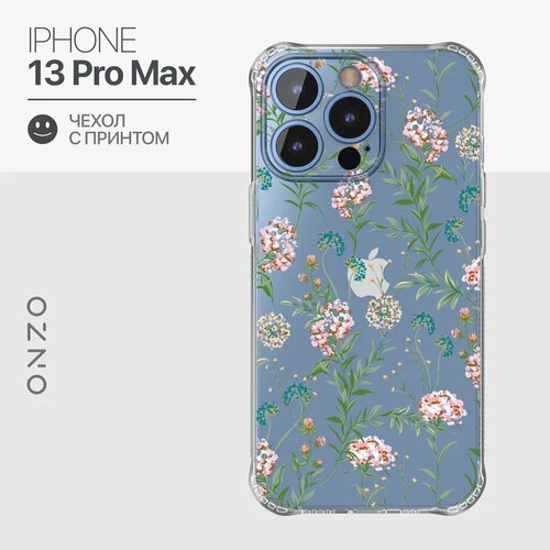 Защитный чехол на iPhone 13 Pro max / Айфон 13 Про Макс прозрачный с принтом "Wildflowers"