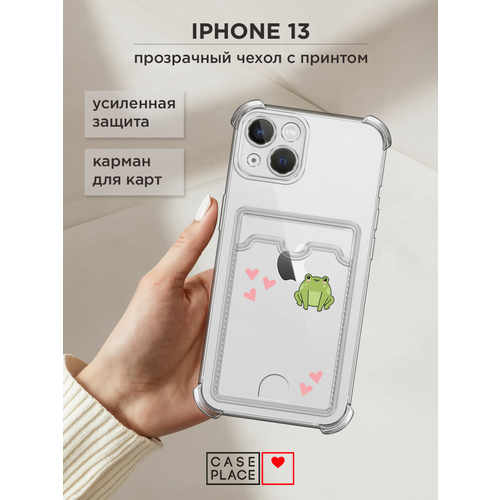 Чехол на Apple iPhone 13 (Айфон 13) с картой и принтом С лягушкой и сердечками