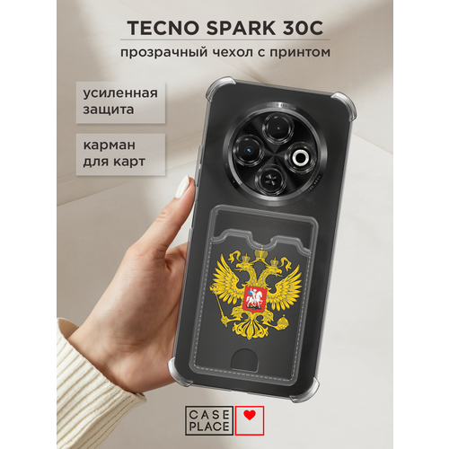 Чехол на Tecno Spark 30C (Текно Спарк 30C) с картой и принтом Герб Россиии