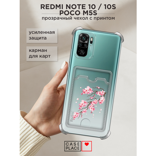 Чехол на Xiaomi Redmi Note 10/10S/Poco M5s (Редми Нот 10/10S/Поко M5s) с картой и принтом Ветка сакуры