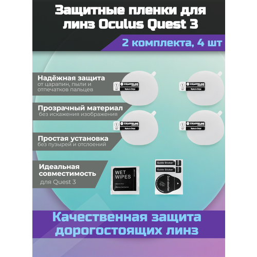 Защитные пленки для линз VR гарнитуры Oculus Quest 3 (2 комплекта, 4 шт)