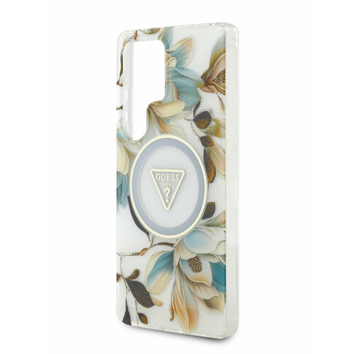 Guess для Galaxy S25 Ultra чехол PC/TPU Glitter Flowers Metal Camera Hard White (MagSafe)