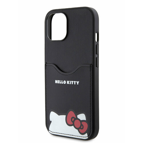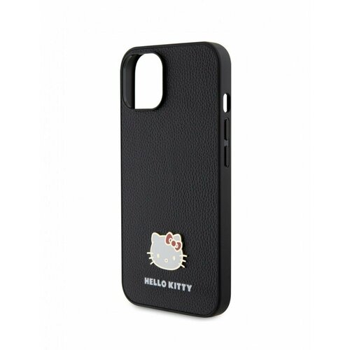 Чехол Hello Kitty PU Grained leather Metal Kitty Head Hard для iPhone 15, цвет Черный (HKHCP15SPGHDLMK)