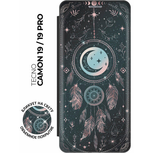 Чехол-книжка на Tecno Camon 19 / 19 Pro / Техно Камон 19 / 19 Про с рисунком "Ловец снов и месяц" черный