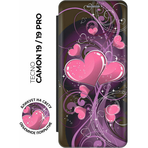 Чехол-книжка на Tecno Camon 19 / 19 Pro / Техно Камон 19 / 19 Про с рисунком "Волшебные сердечки" черный