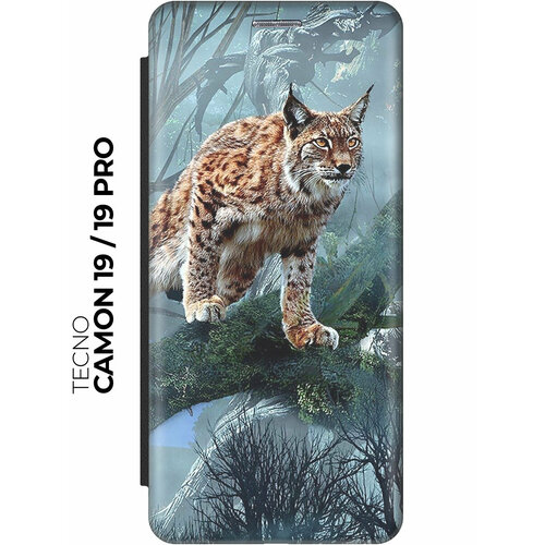 Чехол-книжка на Tecno Camon 19 / 19 Pro / Техно Камон 19 / 19 Про с рисунком "Дикая рысь" черный