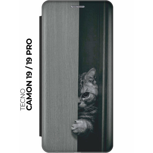 Чехол-книжка на Tecno Camon 19 / 19 Pro / Техно Камон 19 / 19 Про с рисунком "Подглядывающий котик" черный