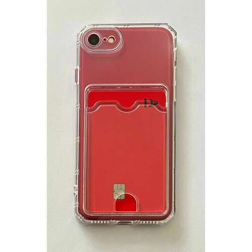 Чехол на iPhone 7, 8 SE 2020 прозрачный противоударный с карманом для карт, угловатыми краями