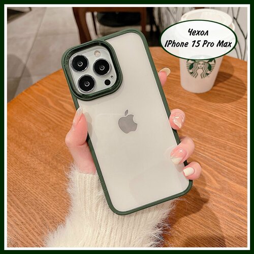 Чехол iPhone 15 Pro Max зеленый, противоударный силиконовый прозрачный на айфон 15 про макс