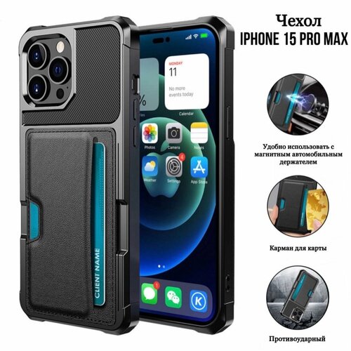Чехол iPhone 15 Pro Max картхолдер из экокожи, силиконовый ударопрочный с карманом для карты на айфон 15 про макс