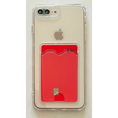 Чехол iPhone 7+, 8 Plus прозрачный, противоударный с карманом для карт и вырезом