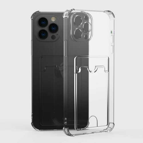Чехол iPhone 13 Pro Max прозрачный противоударный с кармашком для карт и отверстием для удобства доставания