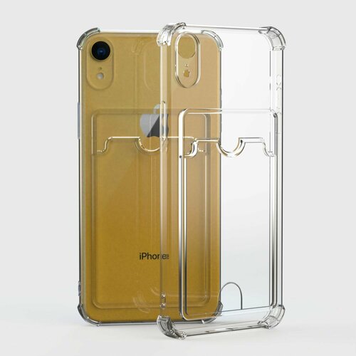 Чехол iPhone Xr прозрачный противоударный с кармашком для карт и отверстием для удобства доставания