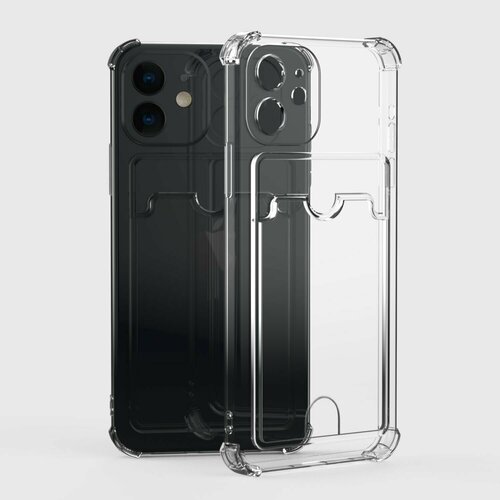 Чехол iPhone 12 прозрачный противоударный с кармашком для карт и отверстием для удобства доставания