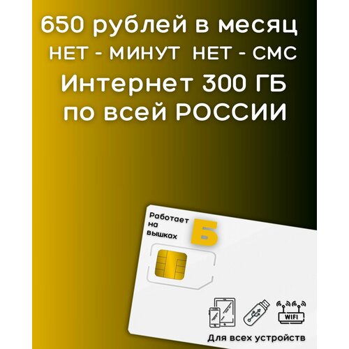 Сим карта безлимитный интернет 650 рублей в месяц по РФ 300 ГБ 4G LTE YABEV1
