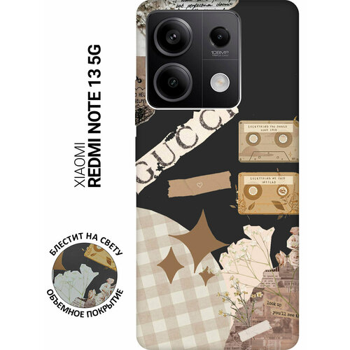 Силиконовый чехол на Xiaomi Redmi Note 13 5g / Сяоми Редми Ноут 13 5г с рисунком "GUCCI Stickers" Soft Touch черный