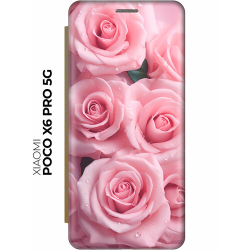 Чехол-книжка на Xiaomi Poco X6 Pro 5G / Сяоми Поко Х6 Про 5г с рисунком "Букет роз" золотой