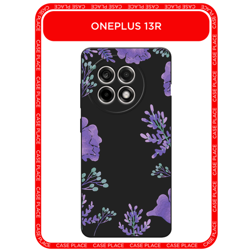 Черный матовый чехол на Oneplus 13R/Ace 5/5 Pro / Ван Плас 13R/Асе 5/5 Про с принтом Сиреневая цветочная рамка