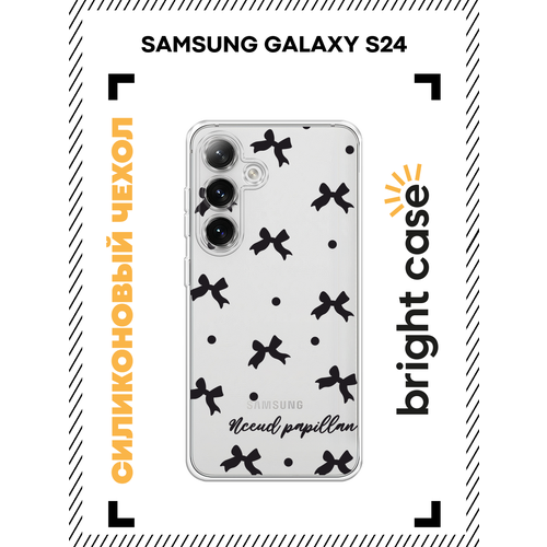 Чехол на Samsung Galaxy S24 / Самсунг S24 с принтом Горошек с черными бантиками, прозрачный