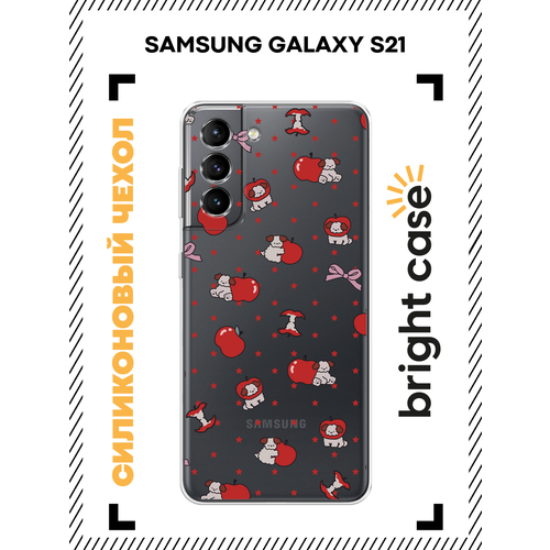 Чехол на Samsung Galaxy S21 / Самсунг S21 с принтом Собачки и яблоки, прозрачный