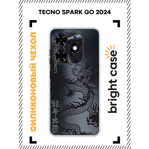 Чехол на Tecno Spark Go 2024/Spark 20C / Текно Спарк Го 2024/Спарк 20C с принтом Черный дракон, прозрачный