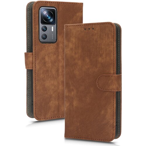 Чехол книжка для Xiaomi 12T, Xiaomi 12T Pro c магнитной застежкой / Сяоми 12Т, Сяоми 12Т Про c отделением под карты (коричневая)