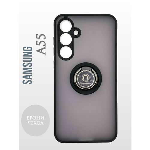 Чехол Samsung A55 5G противоударный (Брони чехол) с кольцом-подставкой и металлической пластиной