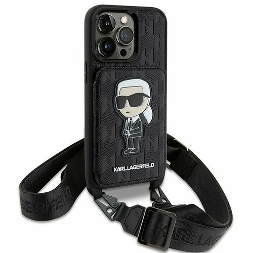 Чехол Lagerfeld Crossbody cardslot PU Saffiano Monogram NFT Karl Ikonik Hard для iPhone 14 Pro