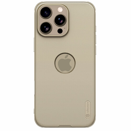 Чехол золотистого цвета (Golden) от Nillkin с вырезом под лого для iPhone 16 Pro Max, серия Super Frosted Shield Pro