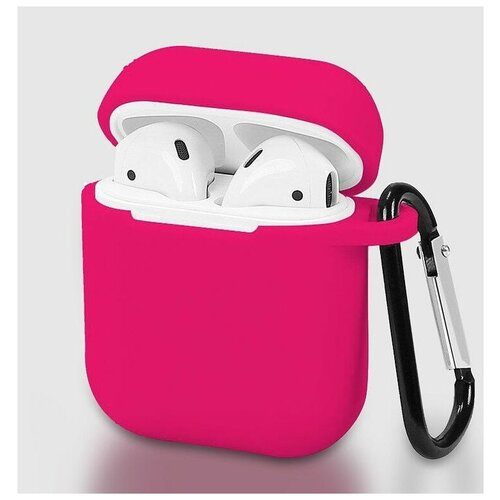 Чехол для Apple AirPods 2 и AirPods 1 с карабином / чехол на Аирподс 2 и Аирподс 1 / чехол для наушников фуксия