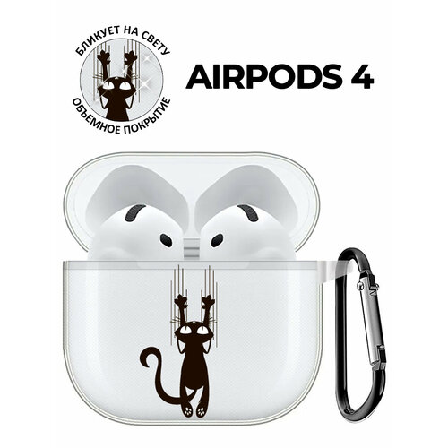 Чехол на Apple AirPods 4 с принтом "Кошечка царапка" прозрачный