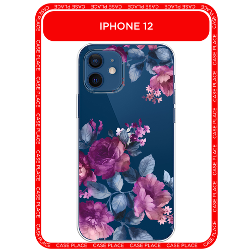 Чехол на Apple iPhone 12/12 Pro / Айфон 12/12 Про с принтом Purple Blossoms, прозрачный