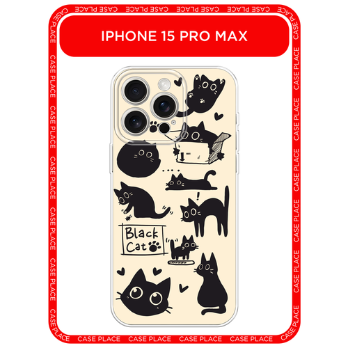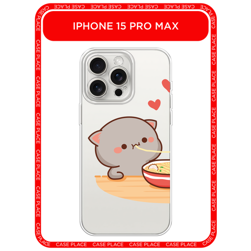 Чехол на Apple iPhone 15 Pro Max / Айфон 15 Про Макс с принтом Чёрный котик с лапшой, прозрачный