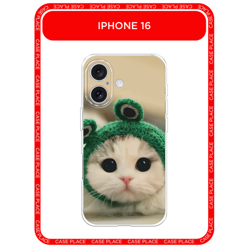Чехол на Apple iPhone 16 / Айфон 16 с принтом Котёнок в лягушачьей шапочке