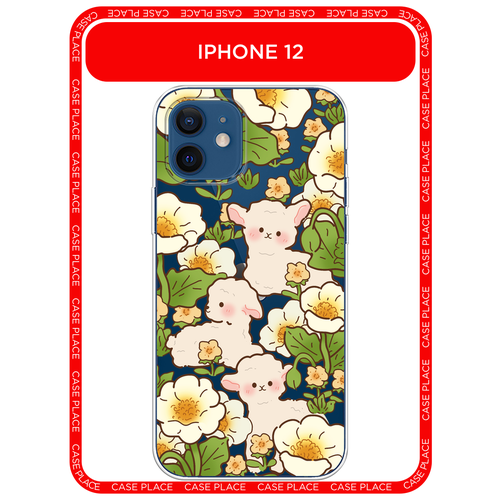 Чехол на Apple iPhone 12/12 Pro / Айфон 12/12 Про с принтом Овечки в цветах, прозрачный