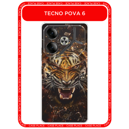 Чехол на Tecno Pova 6 / Текно Пова 6 с принтом Тигр осколки