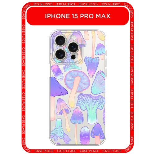 Чехол на Apple iPhone 15 Pro Max / Айфон 15 Про Макс с принтом Пастельные грибы, прозрачный