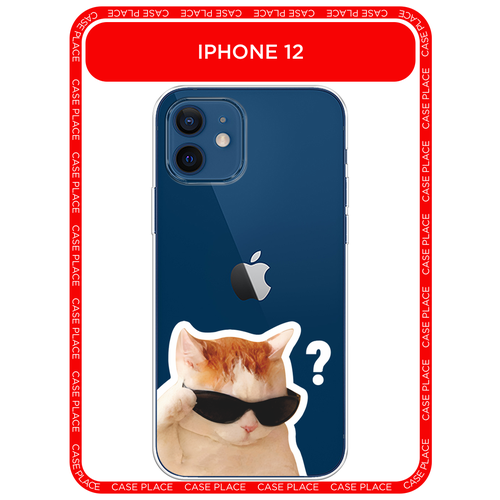 Чехол на Apple iPhone 12/12 Pro / Айфон 12/12 Про с принтом Кот в очках, прозрачный