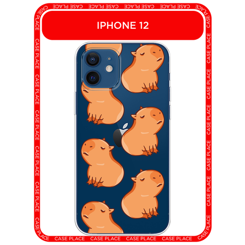 Чехол на Apple iPhone 12/12 Pro / Айфон 12/12 Про с принтом Невозмутимые капибары, прозрачный