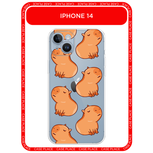 Чехол на Apple iPhone 14 / Айфон 14 с принтом Невозмутимые капибары, прозрачный