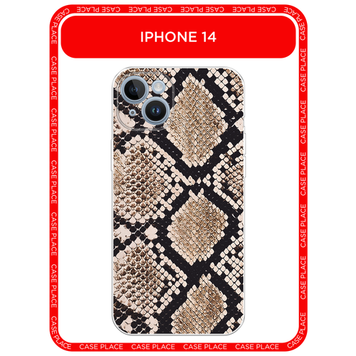 Чехол на Apple iPhone 14 / Айфон 14 с принтом Кожа змеи бежевая